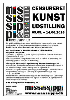 Mississippi - vestjyllands nye kunst- og kulturcenter med løbende udstillinger af 5-8 kunstnere på hver udstilling.